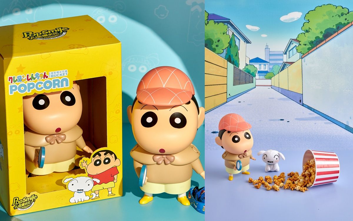 卡滋爆米花於2022年終推出「蠟筆小新爆米花造型桶」,超萌偵探服裝造型為台灣獨家限定款,造型桶內藏各種設計巧思,可開式帽蓋設計、造型精美的隨身背帶,隨桶內含卡滋爆米花的招牌人氣口味「美式焦糖牛奶風味爆米花」1包,焦糖香濃酥脆有勁,絕對是具創意伴手禮。