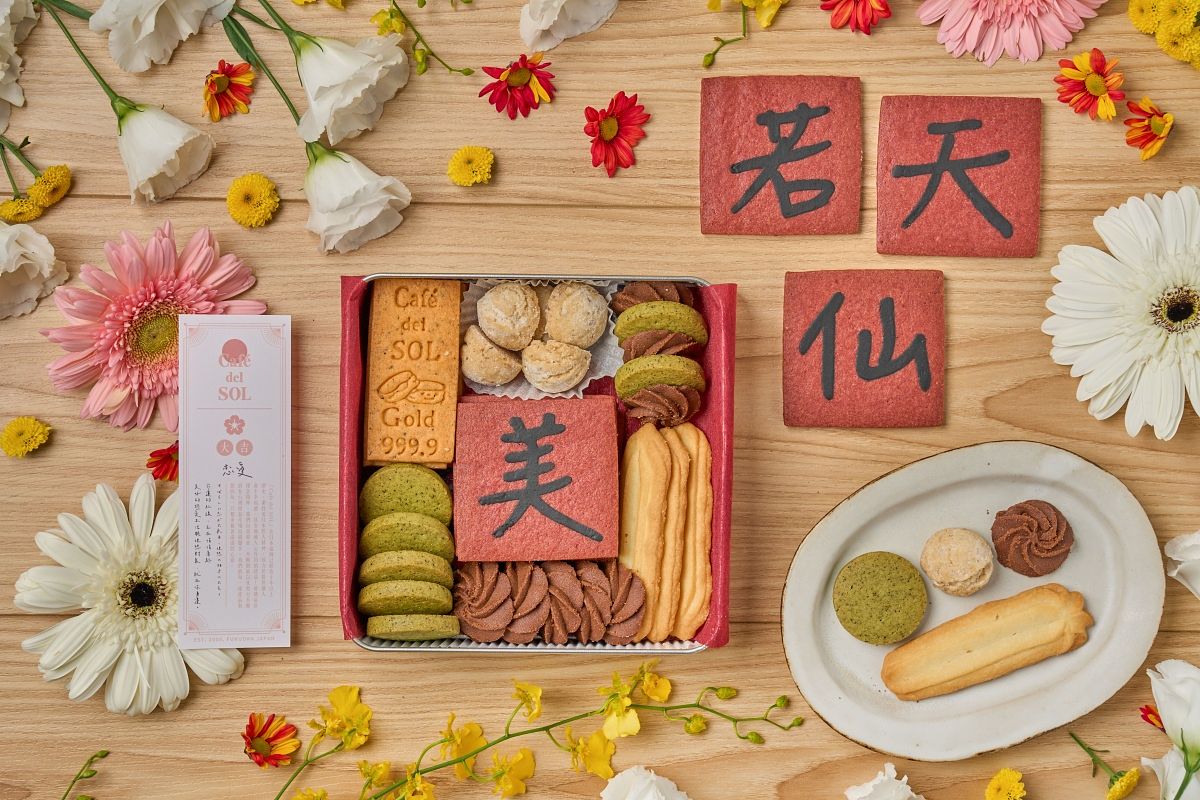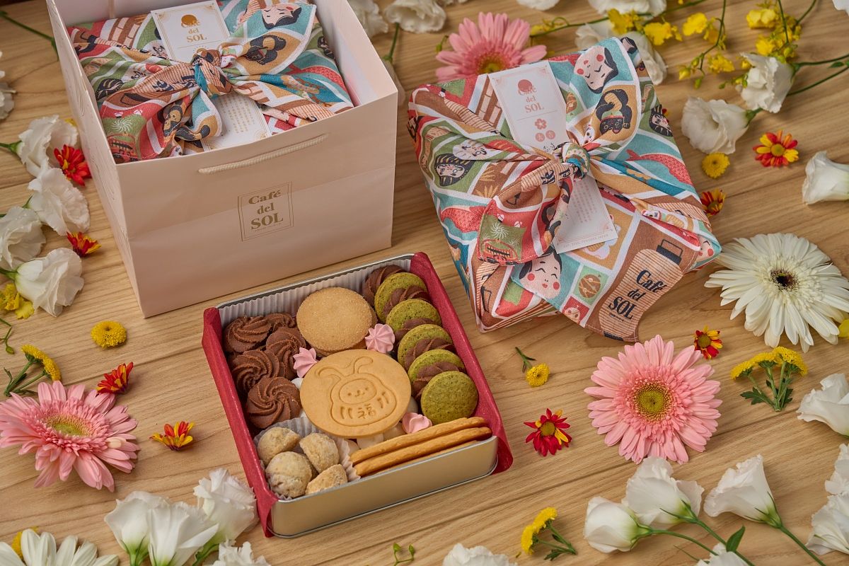 Café del SOL經典的人氣禮盒以東方新年元素,結合西式美味和多元小點,蘊藏心意的純手工餅乾取金條與春聯寓意,搭上三種吉祥話:兔年大吉、財源滾滾、美若天仙任選,既創意又好吃!今年禮盒包裝升級,優雅溫柔的山茶花日本風呂敷包巾,附贈可愛的運氣籤,在新的一年能一起把吉祥話送出去,把好運吃下肚!
