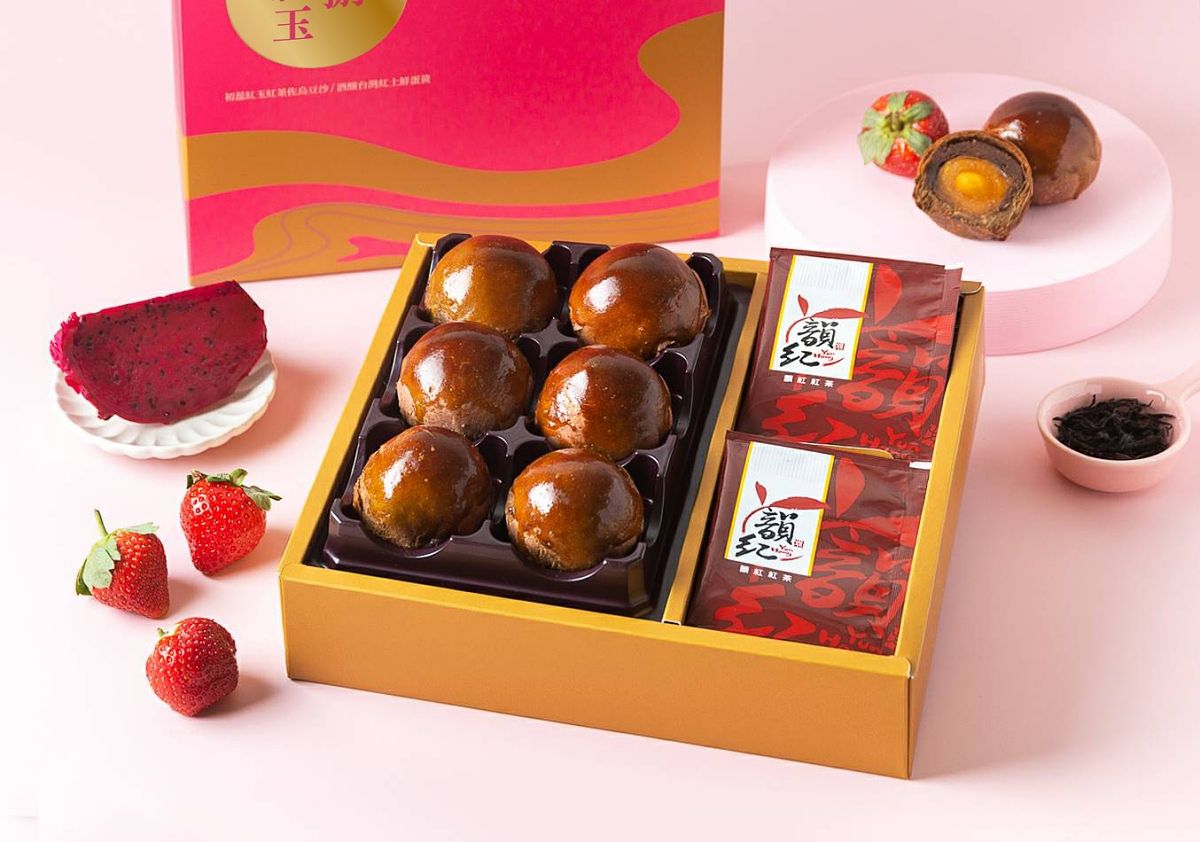 內含6顆蛋黃酥及6包木柵區農會推出的「韻紅紅茶輕巧茶包」