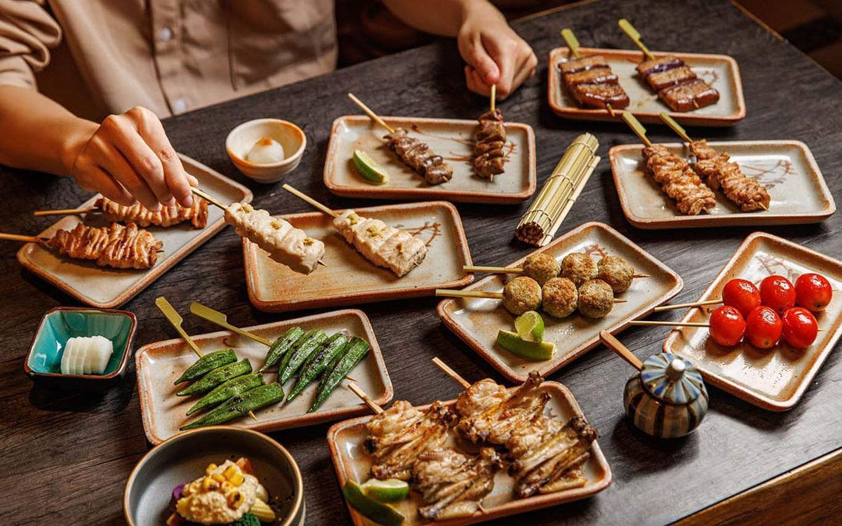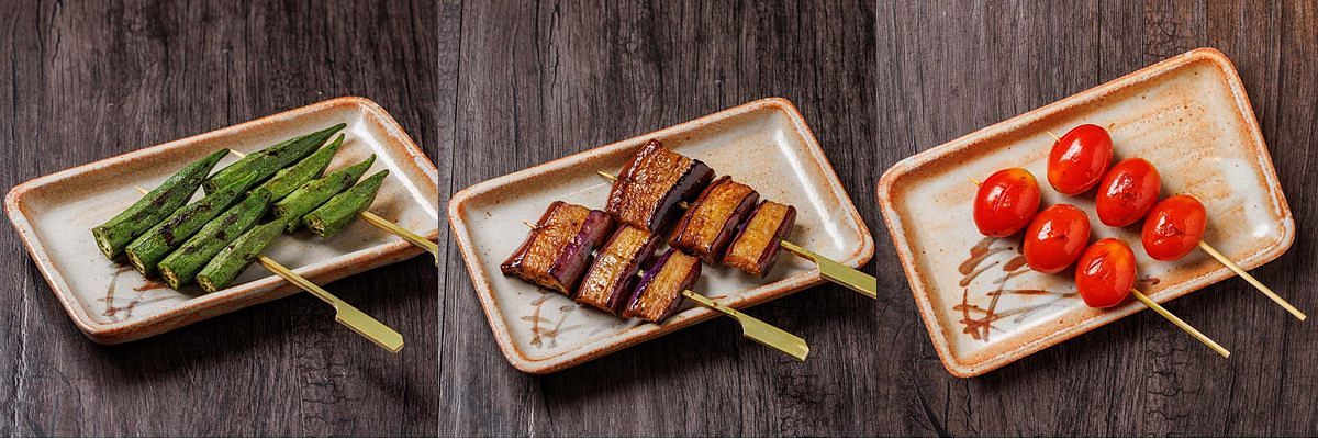 圖片來源:台北鳥喜 熟悉燒鳥的老饕們,也能透過當日推薦,單點其他不定時出現的珍稀部位享用,品項包括口感多汁又帶厚實嚼勁的〈雞蠔肉〉、甚至是吃得到肉帶皮、軟骨、筋豐富口感的〈膝蓋肉〉,以及使用六隻雞才能串成一串的〈小手羽〉等部位。此外,套餐裡穿插在肉類燒鳥串之間的蔬菜串,也有清爽帶特殊口感的〈烤秋葵〉、爆汁燙口的〈烤小番茄〉、〈烤茄子〉等時蔬可品嚐。