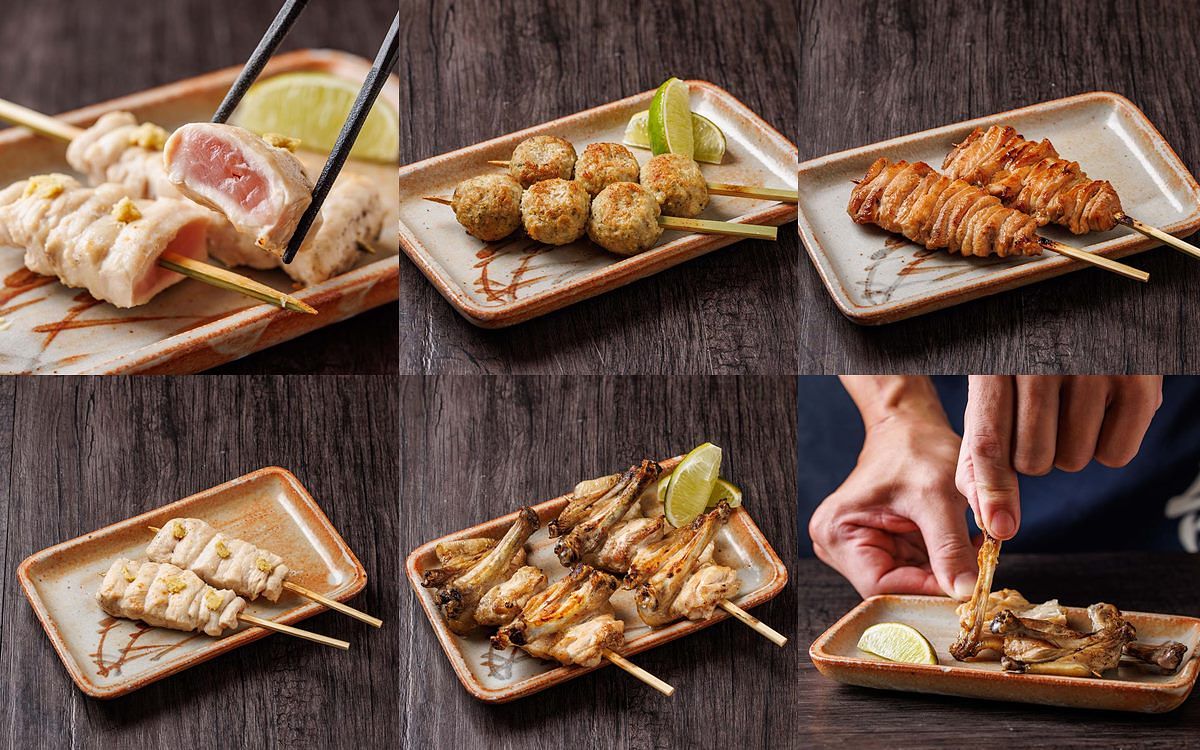 深受老饕喜愛的〈台灣限定おまかせ雞懷石套餐/每套1,500元+10%〉,藉由專業的雞隻分解等部位,提供6串肉類燒鳥與3串新鮮時蔬的組合為基礎,並承襲日本鳥喜的雞懷石型態佐以沙拉、前菜、小品料理、食事、汁物、甘味等料理的套餐。