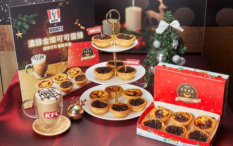 肯德基更與知名巧克力品牌 HERSHEY’S合作,於2022/12/6-2023/2/20推出甜蜜感爆棚、最令人難以抗拒的【濃醇金燦可可蛋撻】及【濃醇可可摩卡】,絕對要讓巧克力控尖叫!【濃醇金燦可可蛋撻】以肯德基經典手工捏製163層酥脆葡式撻殼,奶蛋內餡包裹香甜黑可可,上層淋上經典HERSHEY’S香甜濃郁的可可醬,最後灑上酥脆的黑巧可可杏仁酥餅,並以金色砂糖裝點,輕咬一口即可感受香濃奶蛋餡與柔滑細緻的HERSHEY’S可可在口中融合,巧妙搭配金砂糖黑巧可可杏仁酥餅,口感層次美味交織,盡享冬天的濃醇極致幸福感。【濃醇可可摩卡】則是由義大利精品咖啡品牌LAVAZZA咖啡豆製作而成的香醇拿鐵,並加入經典HERSHEY'S巧克力醬,一口喝下香醇可可摩卡,滿足在心裡!新鲜現烤出爐的【濃醇金燦可可蛋撻】搭上一杯【濃醇可可摩卡】甜蜜又濃郁的絕佳組合,喜愛甜點的你絕不能錯過!