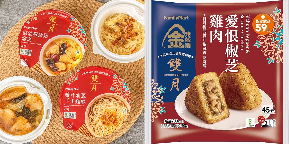 陰雨連綿的冬日,全家便利商店搶攻食補商機,獨家與連續五年榮獲米其林必比登推薦的美食餐廳雙月食品社聯名合作,延續其「為家人提供最豐盛溫暖的營養補給餐點」的品牌精神,攜手推出以麻油為風味核心的「老薑麻油片豚燴飯」、「雞汁油蔥手工麵線」與「麻油猴頭菇燉湯」,更嚴選國產肉品,讓每一口料理彷彿都能嚐到家的溫暖;此外,「全家」金飯糰更運用雙月獨門醬汁,推出「愛恨椒芝雞肉烤飯糰」,12/14起陸續登場,從早到晚都能到「全家」享受米其林的美味。