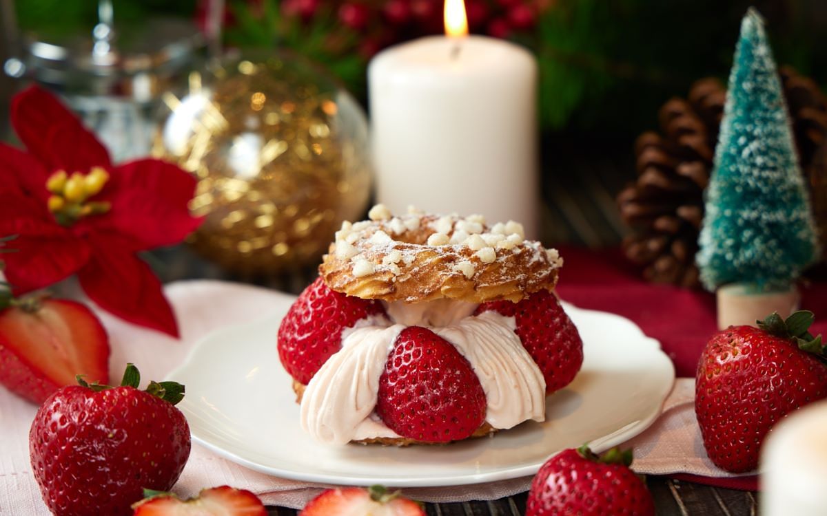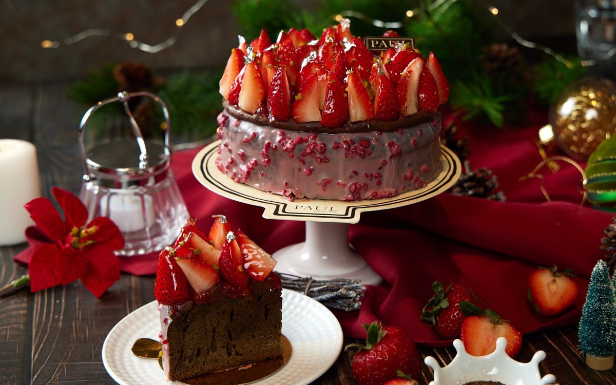 法國傳統習俗中,聖誕節拜訪親友時,法國人會帶塊堅硬的木頭當做伴手禮,祝福對方燒出好運,明年幸運一整年!現因生活習慣改變,改送樹幹形狀的蛋糕,將好運傳統延續至今!PAUL今年將樹幹蛋糕進行改良,升級為2.0,嚴選亮眼粉嫩色系的紅寶石巧克力包覆紅烏龍磅蛋糕,並於上層擺滿鮮紅亮麗的草莓作為點綴,更鎖住眼球焦點,入口淡淡的紅烏龍香氣,搭配酸甜的覆盆子甘納許與鮮甜草莓,甜而不膩,給舌尖意想不到的收穫!