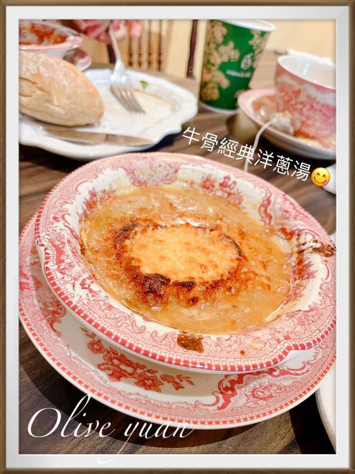 我們點的湯口感都是濃稠口感,所以最適合搭配麵包享用,我媽點的是豆泥菜豆湯,我跟我妹點的是牛骨經典洋蔥湯。