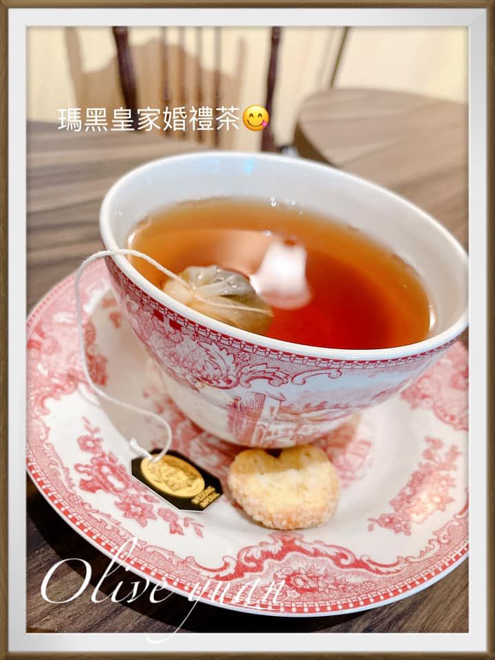 因為慶祝世足,當時還有送咖啡跟啤酒,但我點瑪黑皇家婚禮茶,可續杯。然後點主餐還有麵包跟沙拉,我選的是酸麵包,但它跟德國酸麵包口感不同,不太酸。