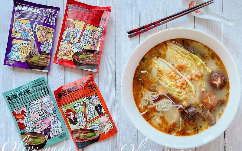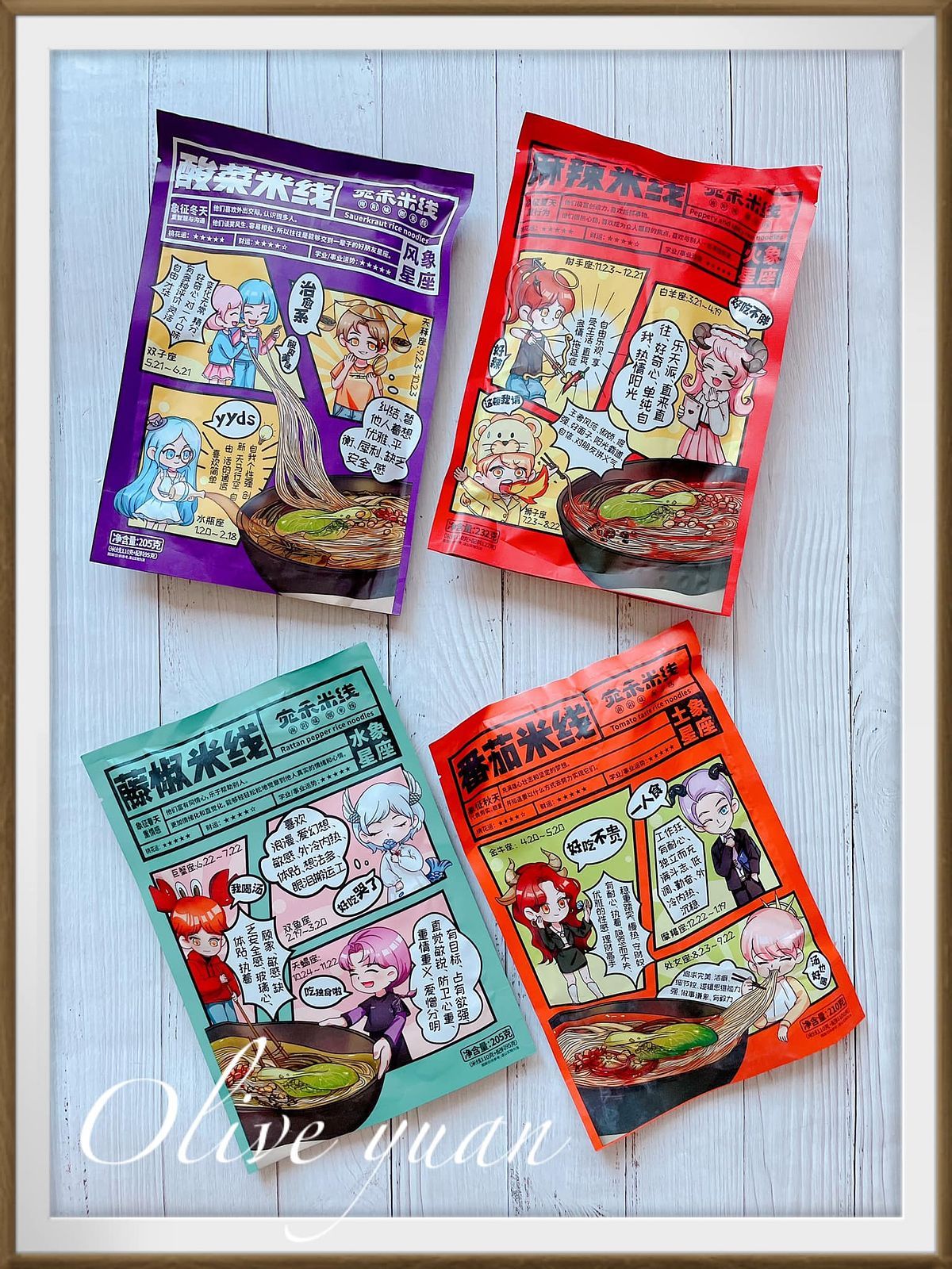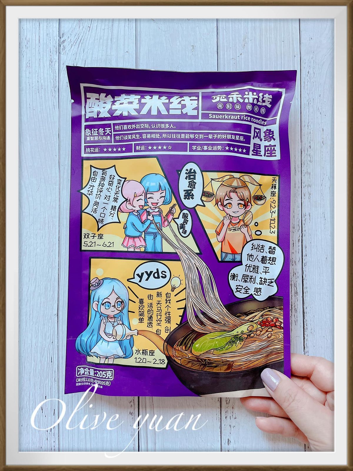 除了「阿寬」!我還喜歡「宛禾」!最近他們推出一系列很年輕人風格的米線,還有星座什麼的、但我不管這些,我只是喜歡吃米線,有酸菜、藤椒、蕃茄、麻辣!我先吃了酸菜跟藤椒,米線主要是玉米淀粉做的,所以吃起來就很像台灣的米粉湯那種米粉,但更有彈性,湯頭也很不錯。
