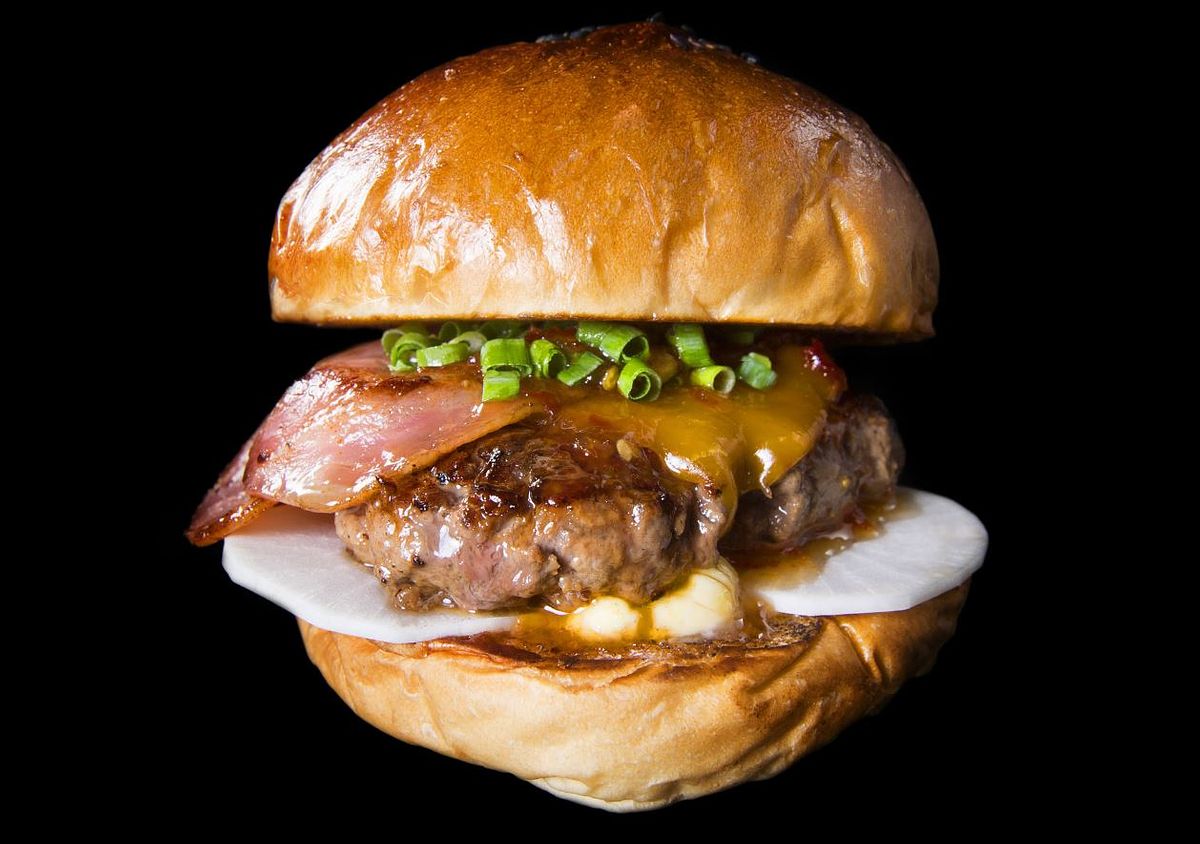 此次「龍漢堡 Dragon Burger」的客座團隊將帶來五款招牌特色漢堡,入境隨俗以台灣南投可可入醬的「冠軍可可漢堡」,是選用油花細緻、脂香甘甜的澳洲草飼牛,畫龍點睛的醬汁是滋味鹹香、入口回甘甜的西京味噌搭配100%巧克力調製而成的BBQ可可醬,成品內還有香滑的切達起士、微辣的芥末美乃滋、以及取代酸黃瓜的京都蔬菜漬物,最後灑上酥炸洋蔥細絲增加口感,保證新奇的味蕾體驗,讓人回味無窮。