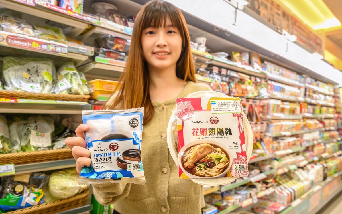 開運更要開醺!「全家」首度與臺灣菸酒公司聯名合作,運用獲國際多項大獎肯定的OMAR單一麥芽威士忌以及經典的花雕酒,推出「OMAR威士忌巧克力塔」與「花雕雞湯麵」2款美食,風味醇厚濃郁、酒香元素完美融入,同時滿足主食與甜點雙重味蕾享受。此外,「全家」與雙月食品社亦看好年節商機,推出以花雕酒入料的「花雕吉運蛋」,新年討吉利不可錯過。