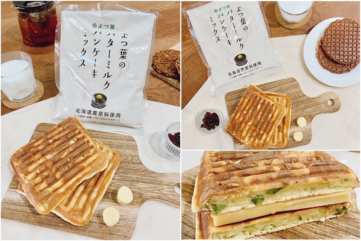 鬆餅粉真的是懶人的好朋友,能省去各種麵粉、泡打粉的比例調配問題,只要一包就能變化出這麼多的花樣,絕對是家中必囤的常備品!不管今天是要招待朋友,還是只是想吃個下午茶,有鬆餅粉就能輕鬆完成,而且不管是甜點還是鹹點都能搞定!其中小編特別推薦來自日本北海道的「四葉鬆餅預拌粉」,原料幾乎都是北海道產,最特別的是添加四葉乳業自己生產的酪乳粉,讓口感有著自然的蓬鬆度。且無添加其他的添加物,吃起來健康又安心。一包450g份量也很剛好,不太會有用不完放到過期的困擾。妳也趕緊入手一包,試試來自北海道的純正美味吧!