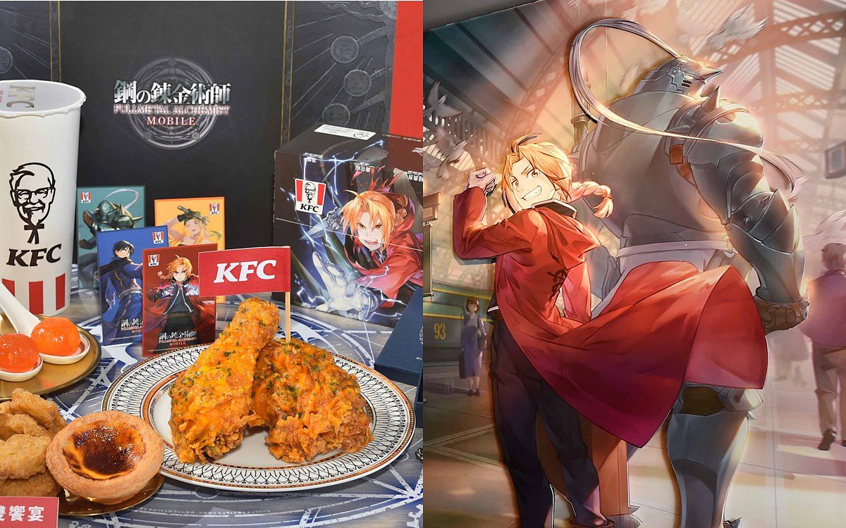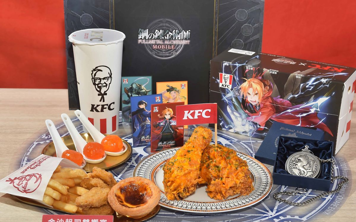 全台第一間肯德基 x 《 鋼之鍊金術師 M 》主題店於從 1 月28日到2月20日期間在肯德基台北台大店盛大展開,肯德基於1月30日起同步推出《 鋼之鍊金術師 M 》聯名限定設計 XL 盒套餐,凡購買指定金鑲富貴起司金沙雞【XL 超豪肯! 餐】,包裝即為限量《 鋼之鍊金術師 M 》版 XL餐盒,還可獲得限量《 鋼之鍊金術師 M 》虛寶卡一張,共有4種卡面,等你來收集! 中獎率100%,每張皆有機會獲得限量遊戲內虛寶,更有機會抽中「SSR 馬斯坦古」、「SR 愛德華」、「SR 阿爾馮斯」或「SR 溫莉」等超人氣角色及豐富好禮,購買一份指定套餐送一張,春節結束後,肯德基讓你開工不憂鬱!