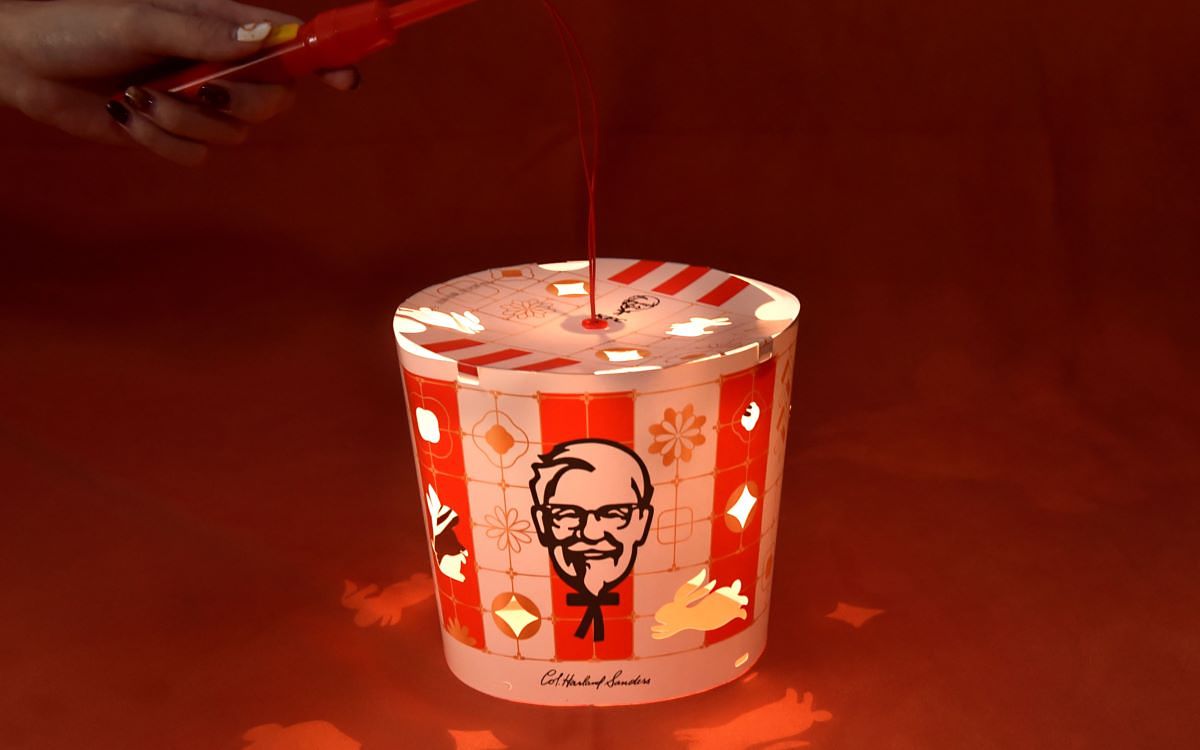 肯德基針對兔年更推出限量2,000份的「肯德基兔年炸雞桶造型元宵燈籠」,以經典的獨家炸雞桶造型,加上兔年應景圖騰簍空設計,吸引肯德基鐵粉們的目光,活動期間凡購買金雞招財享樂餐即可免費帶回家。1/30起獨家開放PK雙饗卡APP會員搶先送,今年就讓「肯德基兔年炸雞桶造型元宵燈籠」陪你歡樂渡過元宵節。