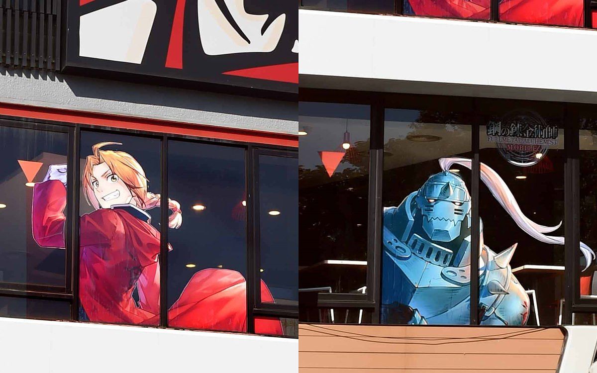 肯德基 x 《 鋼之鍊金術師 M 》全台首家主題店店面整體設計選用鋼之鍊金術師 M 遊戲中的經典角色、場景與圖騰,帶領粉絲回顧手遊中的經典場景,二、三樓玻璃窗更有著巨大的愛德華、阿爾馮斯等主角群的大型窗貼,絕對是粉絲們的拍照打卡新熱點,來到客席區, 還能看見所有人氣角色同時齊聚一堂, 更還原所有經典場景畫面,再加上地貼及桌面都印上「鍊成陣」圖騰,近距離感受到《 鋼之鍊金術師 M 》的實境氛圍。