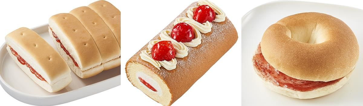 Read Bread草莓季同步登場,共推出4款麵包,新品為「北海道煉乳草莓夾心」2/17開賣,使用二次發酵的堡體讓口感更鬆彈,煉乳則由北海道糖製成,是多年來研發而成的職人之作。此外也有「草莓生貝果」熬製出草莓果醬,帶有草莓的芬芳,貝果的堡體可說是大有學問,為保持軟Q與保水性,使用超高筋麵粉「夢的力量」為主體,調配北海道嚴選小麥「北穗波」製成的麵包專用粉,再融合發酵老麵熟成,以4度C 24小時的低溫舒眠工法製成,風味絕佳。亦有古早味的「草莓夾心麵包」、「雙莓口袋吐司」不論是當早餐或者下午茶點心都很適合。