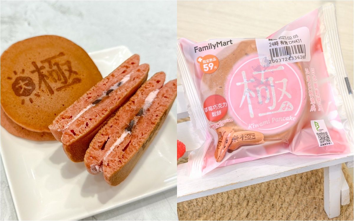 人氣商品「極鬆餅」如雲朵般的膨鬆柔軟,這次推出了全新口味「草莓巧克力」,淡粉鬆餅皮抹上了草莓奶油餡與巧克力,最適合當作下午茶的甜點首選。