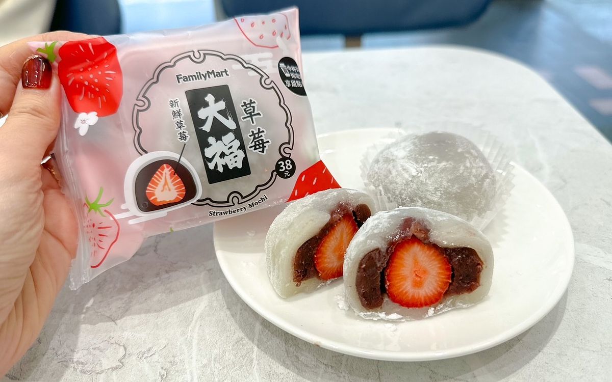 草莓甜點中怎麼少得了「草莓大福」!Q軟麻糬搭配甜而不膩的紅豆餡,再加入一整顆新鮮的草莓,充滿濃濃日式風味的和風甜點,只要來一趟全家就能吃到!