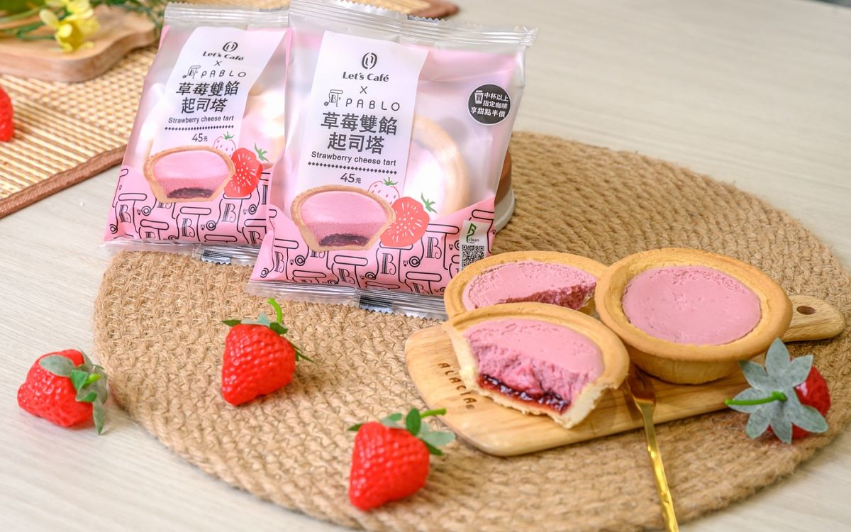 與人氣起司塔品牌PABLO聯名的起司塔新品「草莓雙餡起司塔」,除了有融入草莓風味的粉紅起司餡,底下還有濕潤的顆粒草莓果醬,濕滑香濃的口感搭配派皮達到絕妙的好滋味!