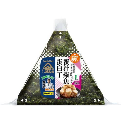 圖片來源:全家 蜜汁柴魚蛋白丁飯糰 42元