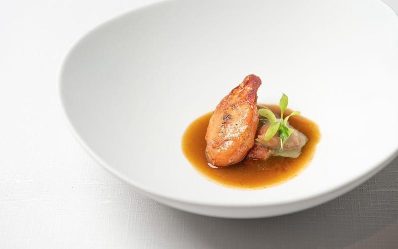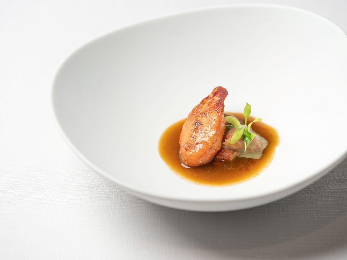 「龍蝦」舒肥後封住肉汁,搭以開胃的青辣椒咖哩與濃郁香醇的龍蝦醬汁,於舌尖盡享豐潤。