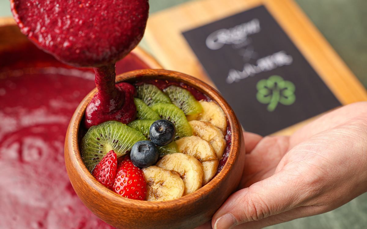 圖片來源:台北晶華酒店「米其林綠星蔬活早餐」餐檯上新增了多款包括芝麻葉、羽衣甘藍、寶貝生菜、紅橡木萵苣及綠奶油萵苣等小農契作的蔬果沙拉,兩款由主廚調配好的料理包括巴西野莓碗(Açaí Bowl)以及夏威夷美顏佛陀碗 (Glow Bowl),前者是使用「全球最棒的超級食物」- 巴西莓入饌,依序加入富含花青素及抗氧化成分「多酚」的冷凍藍莓及覆盆莓,最後倒入杏仁植物奶調和而成,食材自然的甜香與顆粒口感,質樸中展現奢華的用心。
