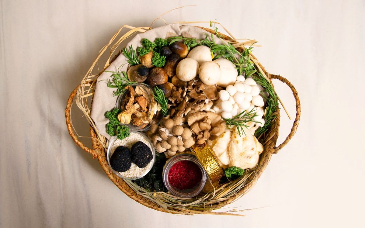 一週二次蔬食集團嚴控食材來源與品質,不斷地尋找並合作台灣在地小農,以呈現「取之大地、用之大地」為主軸之豐裕料理。Tim 本次尋得桃園東眼山部落的椴木菇及來自雲林小農的各式玉米做為料理食材。