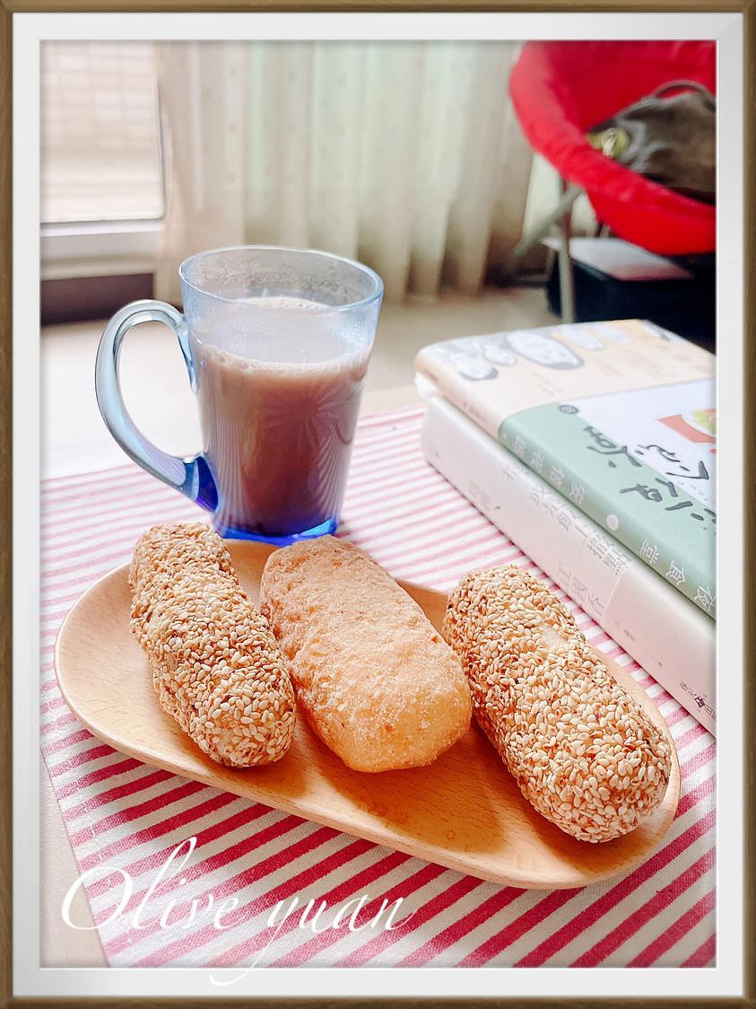 年假結束後,某天假日用熱熱薑奶茶跟麻粩配電視,這是上台北時老么特別打包的,她要打包時、我還說不要不要!好在我妹有堅持,超好吃!