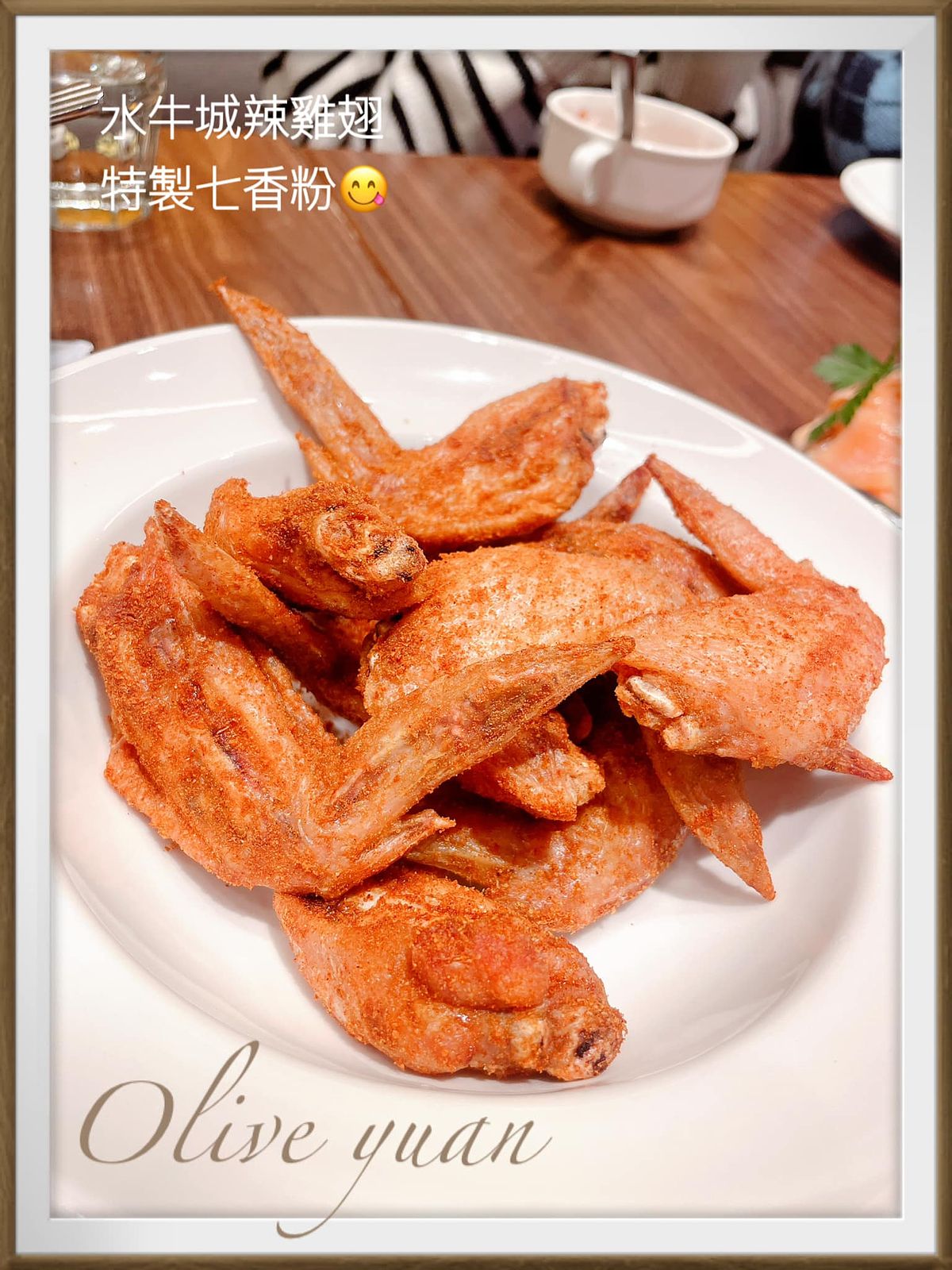然後辣雞翅是好朋友大力推薦的美食,我們選特製七香粉口味,妙的是他們會在桌邊調味給客人看,然後將雞翅從大桶中倒出這樣,我發現這口味有加花生粉,所以七香粉並非七味粉口味,這一定要試試!