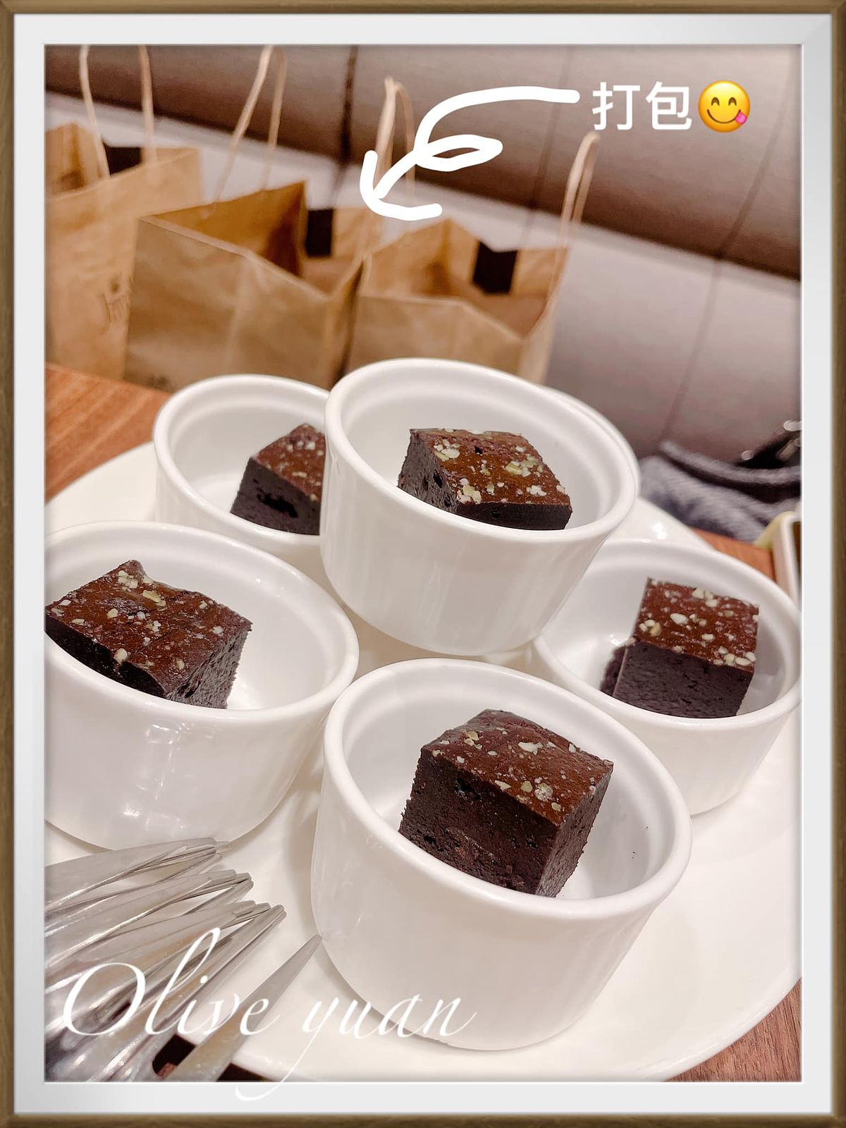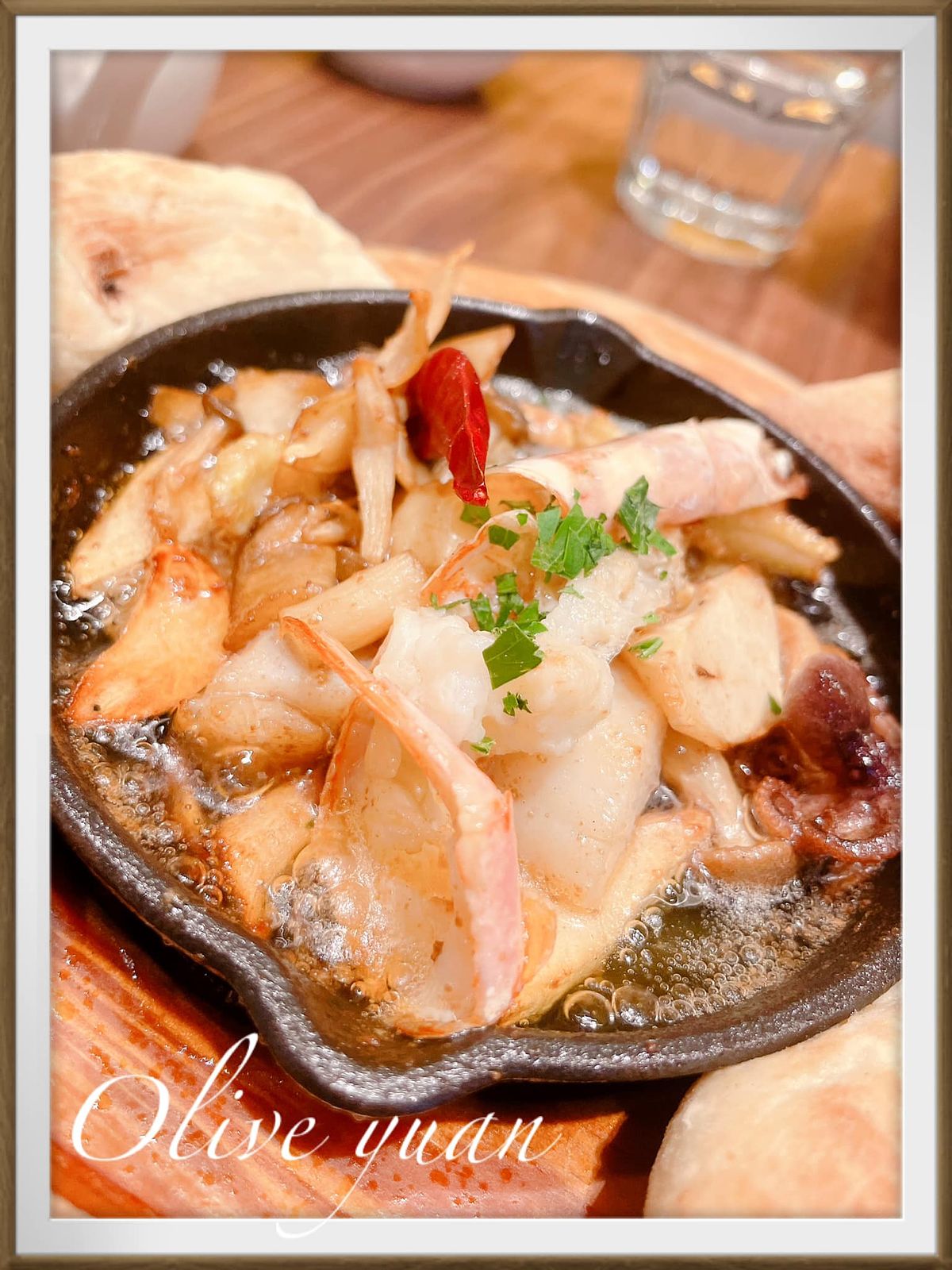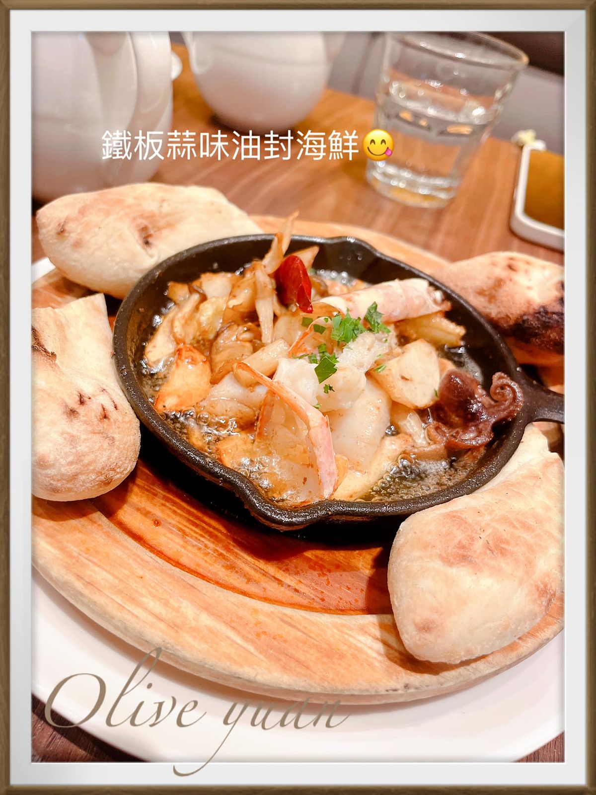 然後油封海鮮很小,但我非常愛吃這種用麵包沾調味過熱橄欖油的料理,說真的已經飽到不行,我還是有將最後的甜點乖乖吃掉!然後有人說~打包的部分回家可以當晚餐!我說:「蛤?!晚餐妳還吃得下?!」