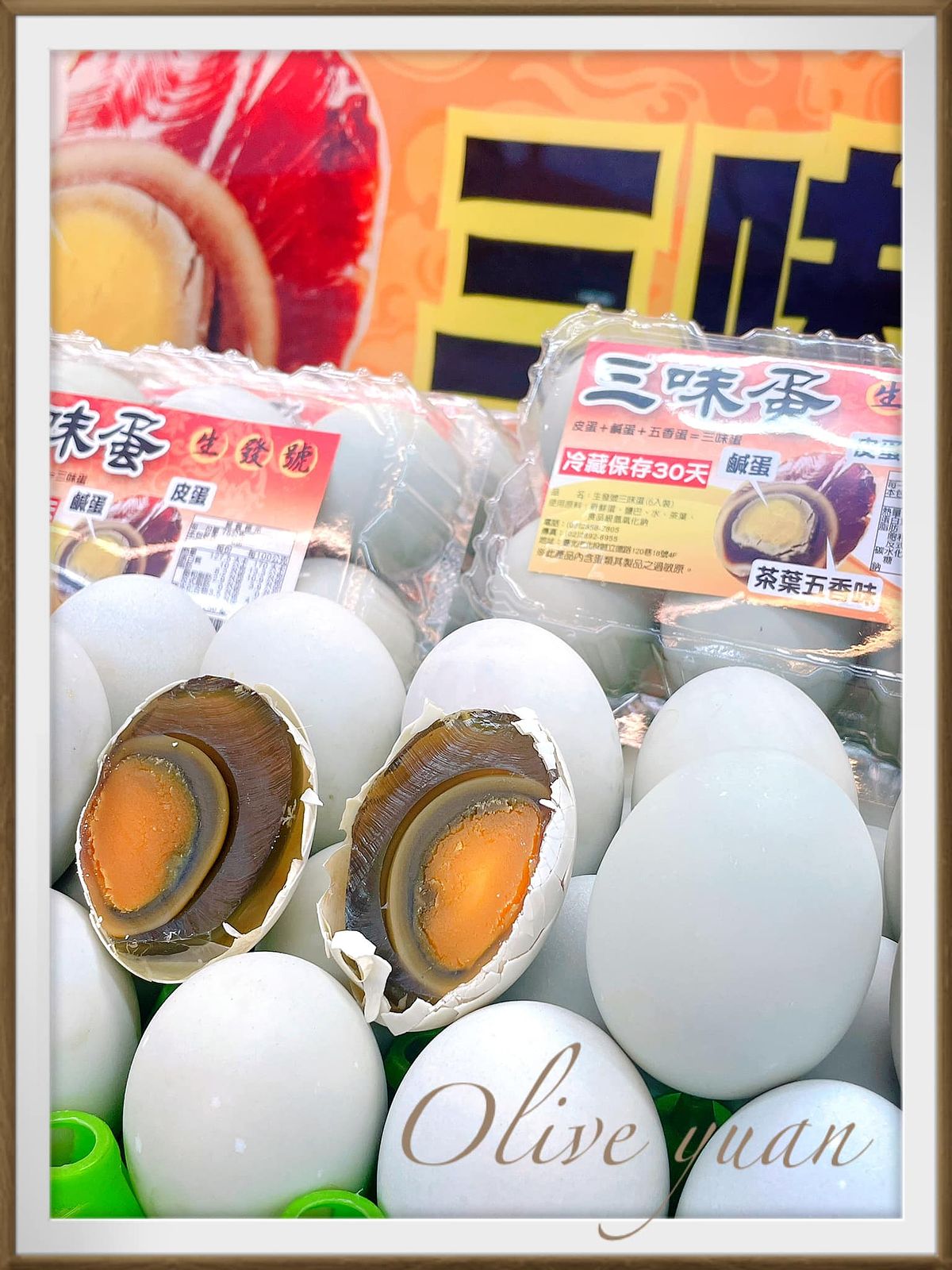 然後再到對面買各種蛋,這次買了特別的三味蛋(有鹹蛋、皮蛋、茶葉蛋三種口感的蛋,挺好吃)、熱熱的鐵蛋,還有雙胞胎,男友說這家的雙胞胎是最好吃的!