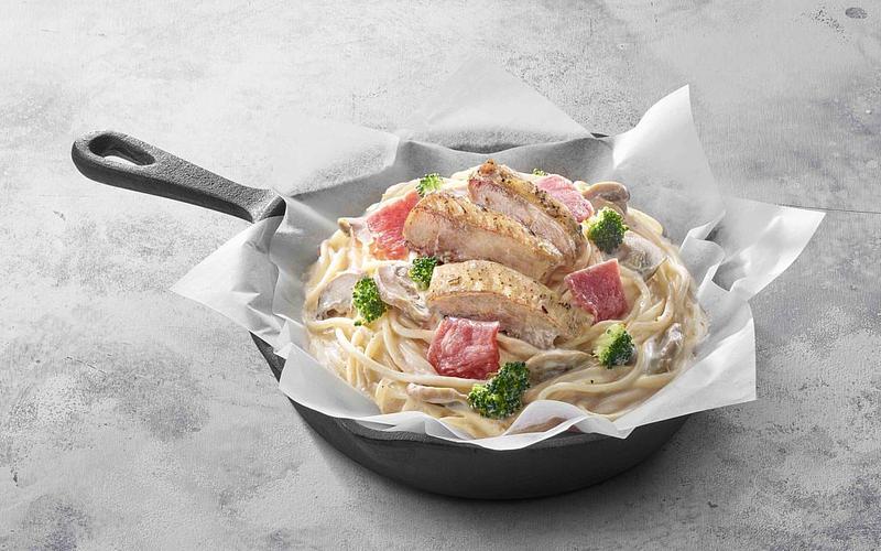 在義大利麵眾多種類中,「直麵」(Spaghetti)是最經典也是全世界最受喜愛的義大利麵條,這次Pasta Hut終於首次推出直麵系新品!必勝客採用精準製麵工法,並以3:1黃金比例控制煮麵及冷卻時間,讓麵條保有完美Q彈口感;再用212度獨家紙包封烤技術,牢牢鎖住食材美味,外送到家依然熱騰騰、香氣逼人!打開紙包就能立即享用道地義式美味,以及屬於個人的療癒「食」光!