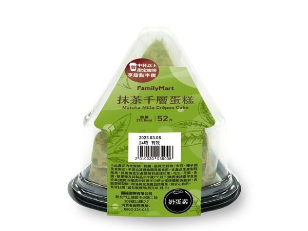 圖片來源:全家 抹茶千層蛋糕 52元