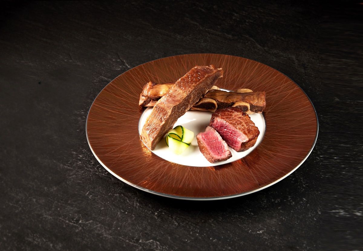 王品獨具中式口味、經典主餐牛小排,以特殊佐料醃浸兩天兩夜,再以250℃烤箱慢火烘烤一個半小時,盛裝於高溫瓷盤,保持牛排的香嫩風味。
