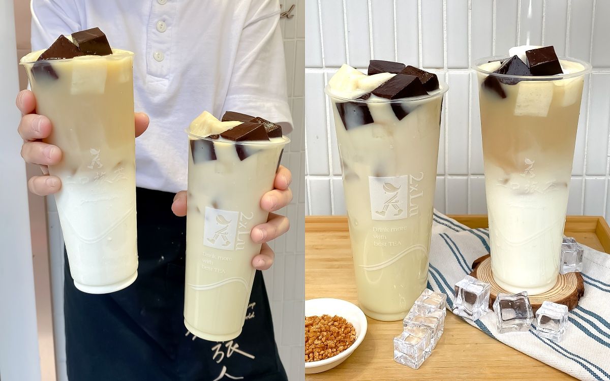 二口旅茶新推出「腐胖達手作玄米奶茶」,用獨創的雙色豆腐打造黑白相間的可愛視覺,營造熊貓兩色相間的可愛視覺,並以蕎麥玄米茶與奶茶的黃金比例,創造具有濃郁豆香、奶香、蕎麥玄米香的風味奶茶。