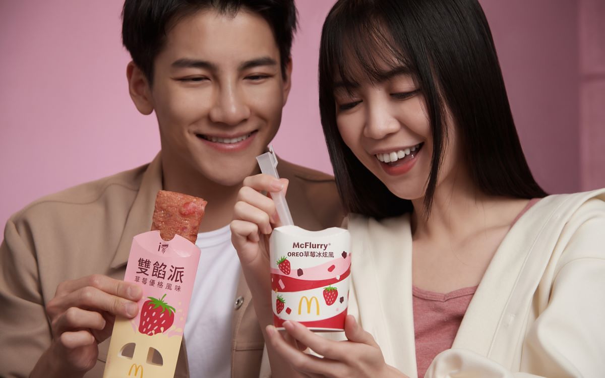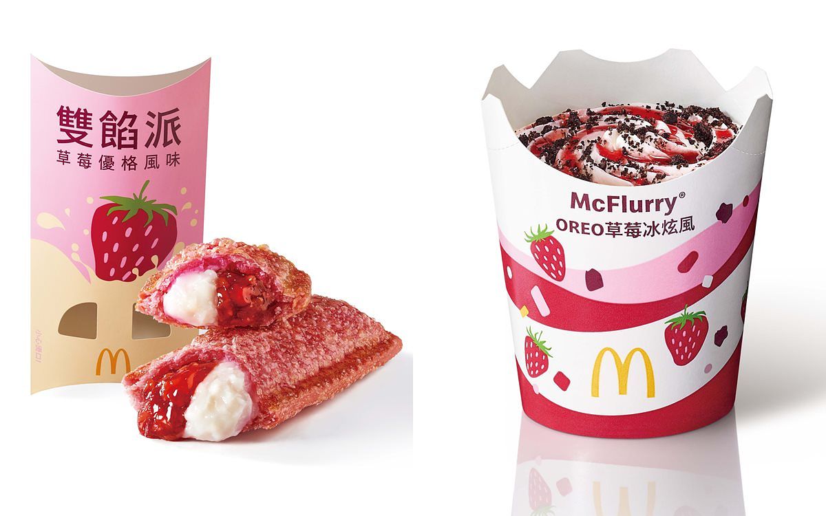 草莓炫風來襲!麥當勞3月15日起,推出全新粉紅系甜點「OREO草莓冰炫風」、「草莓優格雙餡派」。「OREO草莓冰炫風」以奶香濃郁的冰淇淋鋪底,搭配OREO餅乾脆片及草莓果醬,酸甜口感在舌尖迸發新滋味,讓人超滿足。「草莓優格雙餡派」美味誘人,一口咬下,粉紅派皮與草莓果醬、滑順優格完美結合,大人小孩都喜愛。
