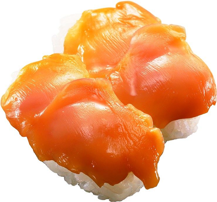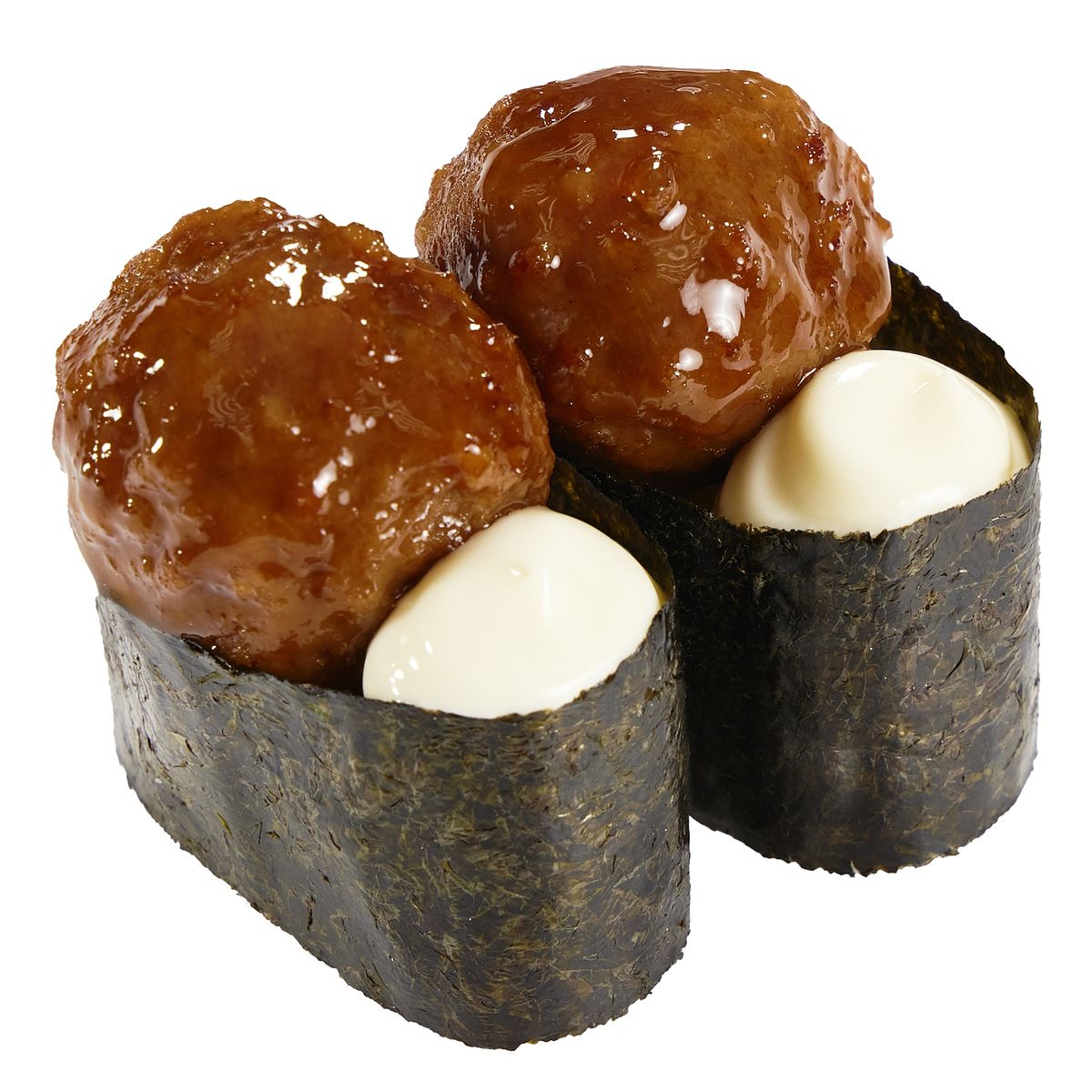 採用澳洲和牛製作的高級牛肉丸,混合和風柴魚風味醬汁而成。牛肉油脂風味鮮明,結合醬汁的甘甜,再搭配一點美乃滋提味,整體味道濃而不膩,是一款大人小孩都會愛上的軍艦壽司。