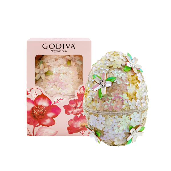 佈滿精緻花朵裝飾的復活蛋造型完美呈現春日的靈動氣息,一片片手工縫製的亮片折射出迷人光彩,搭配多彩豐富的迷你復活蛋巧克力,點亮明媚春日,傳遞屬於復活節的美好祈願!