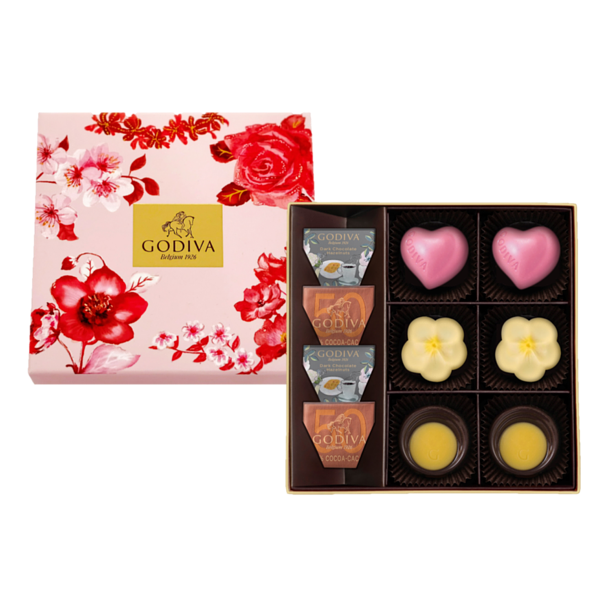 嬌艷綻放的花朵點綴,帶來別樣春景。春日限定櫻花形鹽味焦糖白巧克力、心形覆盆莓白巧克力與經典口味搭配帶來煥然一新的意趣,一盒臻享GODIVA近百年淬鍊的極致工藝與精華!