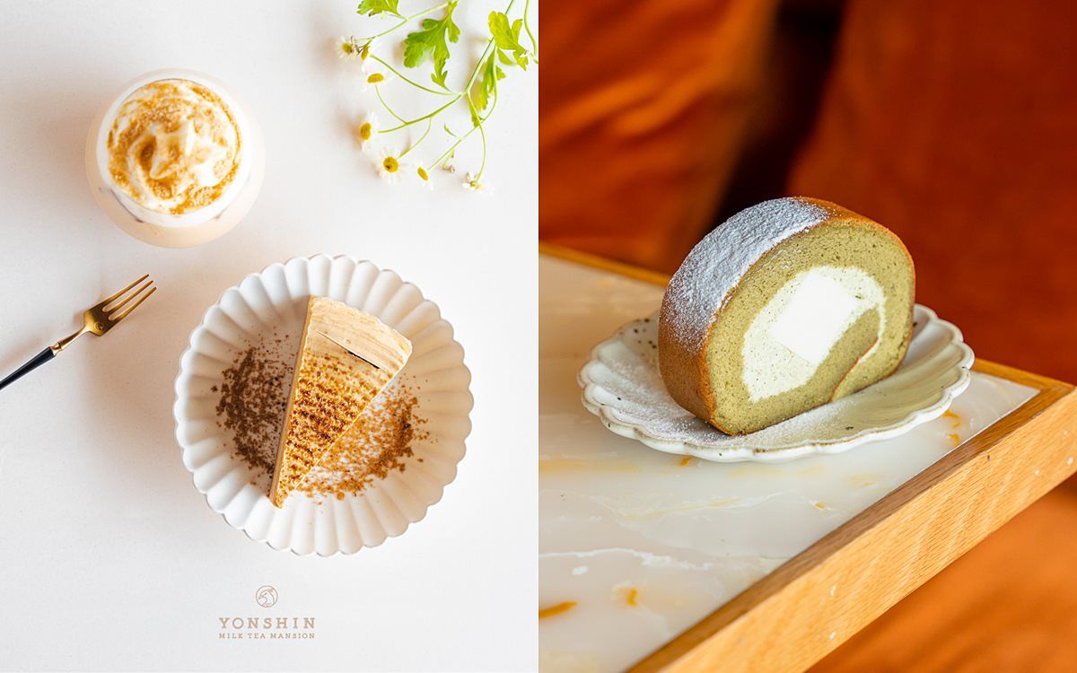 圖片來源:永心鳳茶奶茶專門所 紅玉麵茶奶蓋 $160、黑糖鐵觀音千層 $200 / 梨山奶酪捲 $160