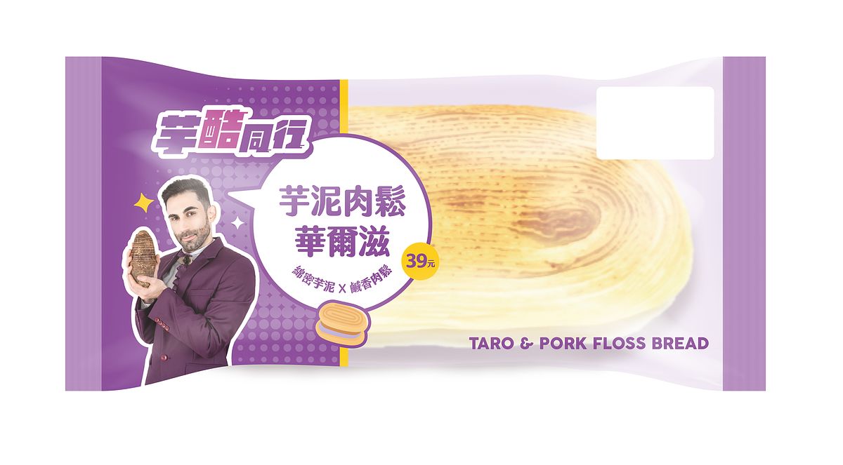 7-ELEVEN「芋酷同行」聯名新品嚴選在地食材當中香氣較濃的檳榔心品種芋頭,開發5款全新療「芋」系商品,新品首推具台式特色風味的麵包「芋酷同行-芋泥肉鬆華爾滋(售價39元)」以柔軟甜麵包包裹著香濃芋泥與傳統肉鬆,外層則以酥脆千層,呈現絕妙組合鹹甜涮嘴!