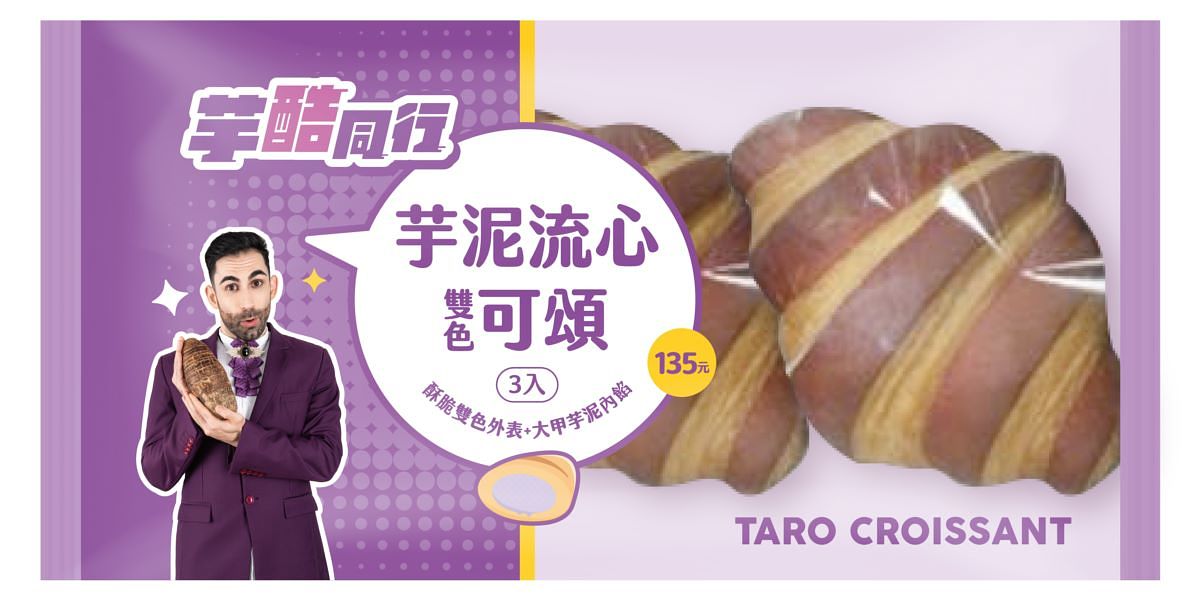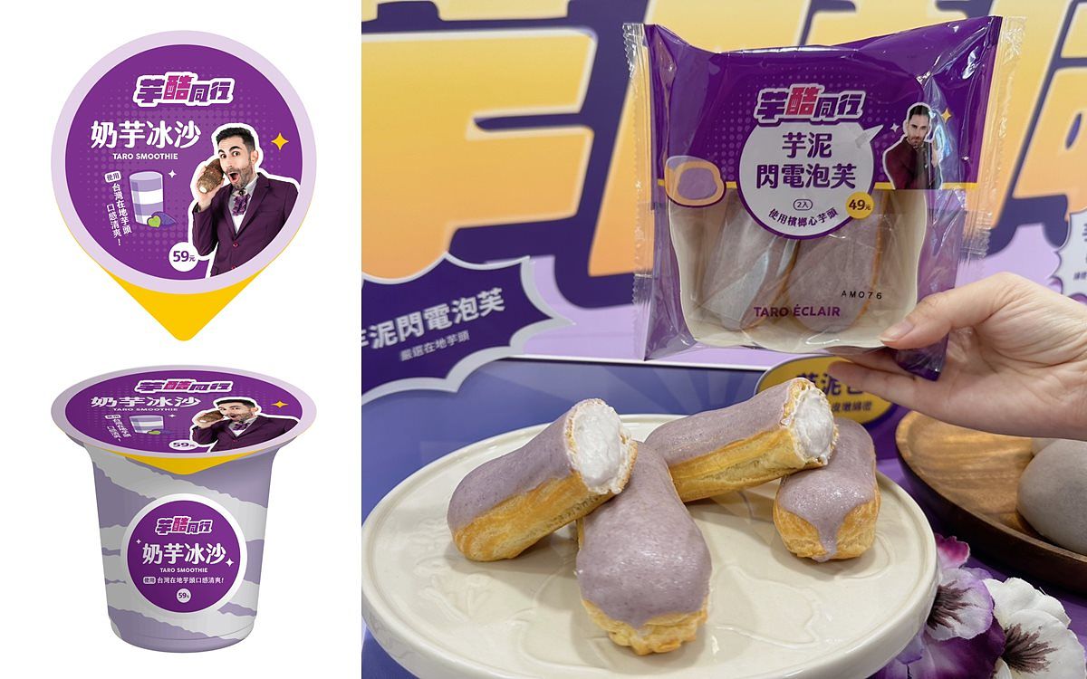 而百萬訂閱YouTuber酷身為法國人對於道地法式甜點相當熟悉,因此雙方在品項開發上也特別加入法國元素,將經典法式甜點-閃電泡芙做了變化,推出少見的芋頭口味「芋酷同行-芋泥閃電泡芙(售價49元)」,香烤微酥的外皮填入飽滿歐洲進口鮮奶油和在地香醇芋泥內餡,最後再以白巧克力淋醬點綴,豐富口感勢必成為下午茶點首選。此外,4月19日也將上市「芋酷同行奶芋冰沙(售價59元)」粉紫色的高顏值外觀,帶來視覺與味覺的滿滿療癒感。