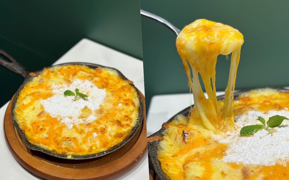 可說是bb.q隱藏版甜點的「雲朵呼呼」,取名來自於烘烤後如熱呼呼的雲朵般的法式吐司,以湯匙披薩的鐵鍋吃法上桌,吃起來香甜濃郁又鬆軟,口感綿密,讓人一吃就上癮。