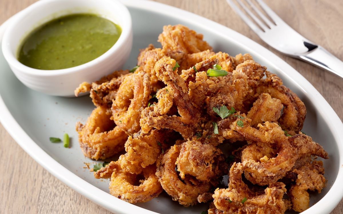 圖片來源:Smith & Wollensky 花枝裹上特製起司酥炸粉炸至金黃酥脆,搭配微辣清爽的綠莎莎醬,綠辣椒與香料帶來不同層次的辛辣味,檸檬畫龍點睛的酸度襯托出花枝的甜味。