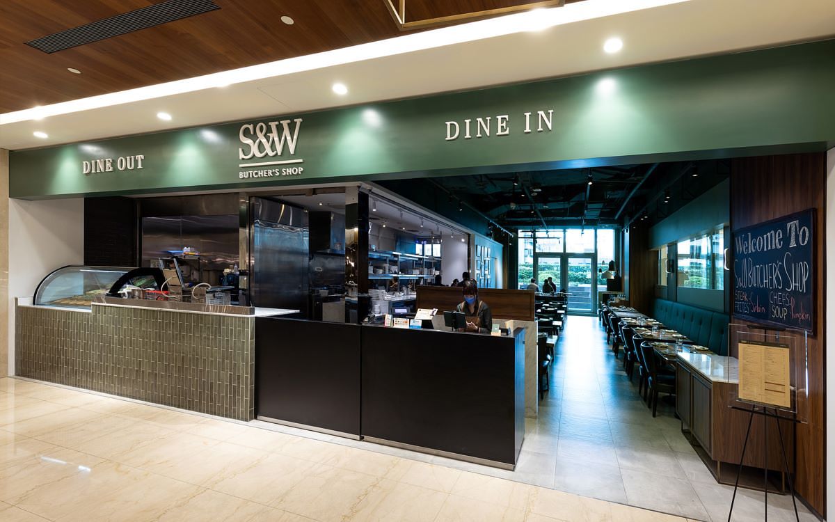 圖片來源:Smith & Wollensky S&W Butcher’s Shop入口左側為DINE OUT主餐沙拉外帶櫃台,右側為DINE IN內用餐廳區,占地60坪,共有50席座位,整體裝潢延續主品牌Smith &Wollensky的綠色系與木質調,選用柔和樸質的蒼松綠與卡其色來凸顯年輕氣質,餐廳內部的大片落地窗為空間增添光影變化,半開放式廚房讓用整體用餐氛圍更加生動活潑,牆面則是以各地分店的照片作為點綴。肉舖商店為於餐廳的右側,為獨立銷售空間,販售各式生肉品項如Smith & Wollensky乾式熟成牛排、美國PRIME等級牛肉、台灣雲林究好豬排….等,另有銷售S&W自有酒款與餐飲用具,預計四月中開始營業。