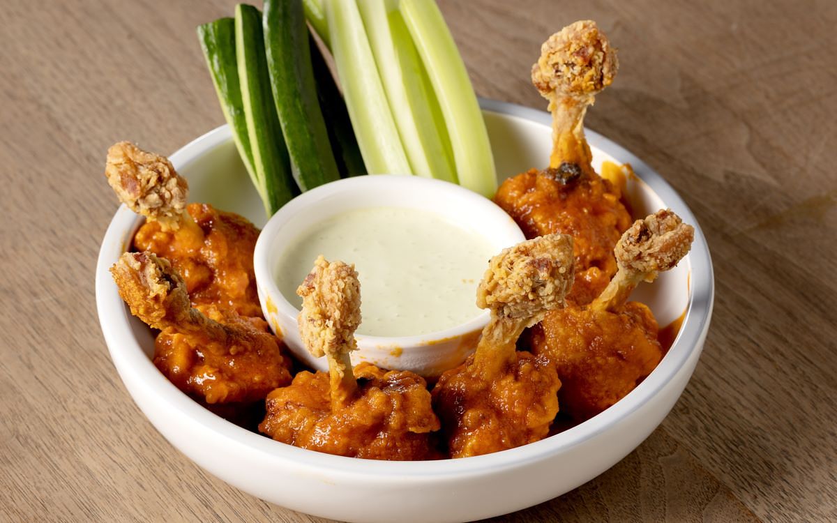 圖片來源:Smith & Wollensky 將雞翅腿細工處理成棒棒糖形狀方便拿取食用,以水牛城辣醬醃漬入味,辣勁十足。搭配墨西哥鄉村醬,酸奶美奶滋平衡辣度,再配上清爽的小黃瓜與西洋芹,一口接一口停不下來。