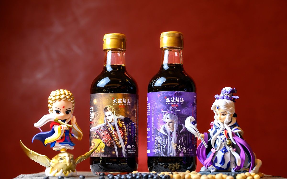 圖片來源: 丸莊醬油 暨2020年底雲林雙強「丸莊醬油」與「霹靂布袋戲」聯手合作推出第一支布袋戲英雄醬油「丸莊霹靂素還真醬油」之後,即引起波瀾效應,不僅是聯名IP嶄新創舉,更為醬油產業與傳統偶戲跨界合作寫下經典傳奇的一頁,而首支問世的聯名醬油產品「丸莊霹靂素還真醬油」更成為全台霹靂影迷爭相典藏的珍寶及台灣好物禮贈首選,在睽違近三年後,今年「丸莊醬油」與「霹靂布袋戲」再度攜手,推出第二支霹靂英雄醬油「丸莊霹靂一頁書醬油」。