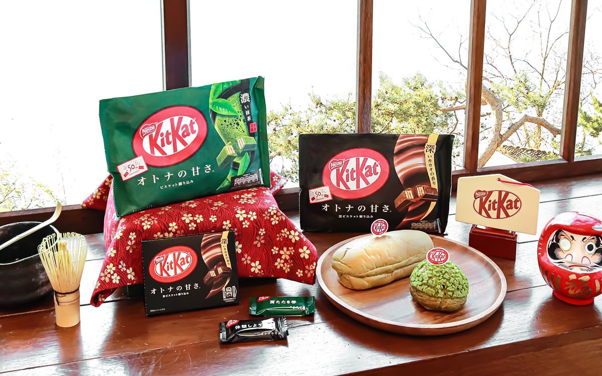 KitKat巧克力一直以來都是台灣人到日本旅遊的必敗伴手禮,這次首度將日本原裝KitKat霸氣直送台灣,精選日本KitKat 50週年最暢銷的經典口味「KitKat濃黑巧克力口味」與「KitKat宇治抹茶」,首登全台超商(7-11、全家、萊爾富)與全聯,隨時可以嚐到最正宗的日本味,日本巧克力控趕緊手刀出發。KitKat 濃黑巧克力口味以頂級黑巧克力搭配酥脆威化餅乾,香醇不膩的濃郁滋味是巧克力愛好者不可錯過的夢幻逸品。而KitKat宇治抹茶使用100%嚴選日本京都宇治抹茶,抹茶獨有的苦韻與茶香在嘴中化開,帶給消費者豐富的層次感,抹茶濃郁爆表、幸福感飆升。