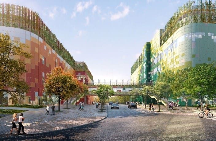 南館與北館之間,分別於2樓室內及3樓戶外規劃了銜接二館間移動的連通空橋,採雙層設計,寬度6米以上,行進於兩館之間十分方便。