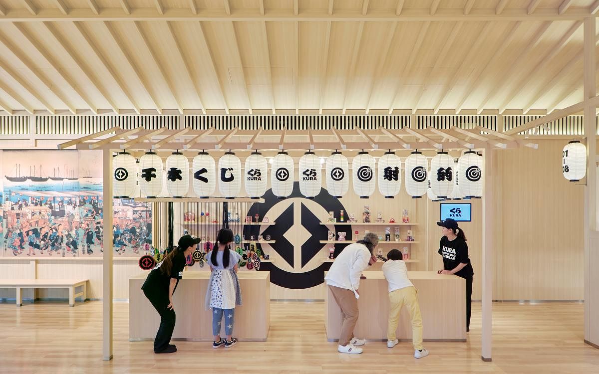 圖片來源:藏壽司 此次店裝設計全程交付日本鬼才設計師佐藤可士和負責監修,對每份細節的堅持幾近完美。為延續江戶時代的風格,以燈籠牆作為整體視覺亮點,並搭配五彩繽紛的燈光讓整體視覺效果更加炫目。走到入口處更可看見迎賓大燈籠及台灣獨家設計的藏壽司家徽水池。以浮世繪裝飾店內,讓消費者能以視覺體驗江戶時代的娛樂文化;引進日本祭典遊戲,更能體驗熱鬧歡愉的生活氣息 。因此,不難看出這間店深具飲食和娛樂共存的意義,將用餐體驗提升到另一層次,希望藏壽司高雄時代大道店能成為業界首屈一指的美食祭典朝聖地!