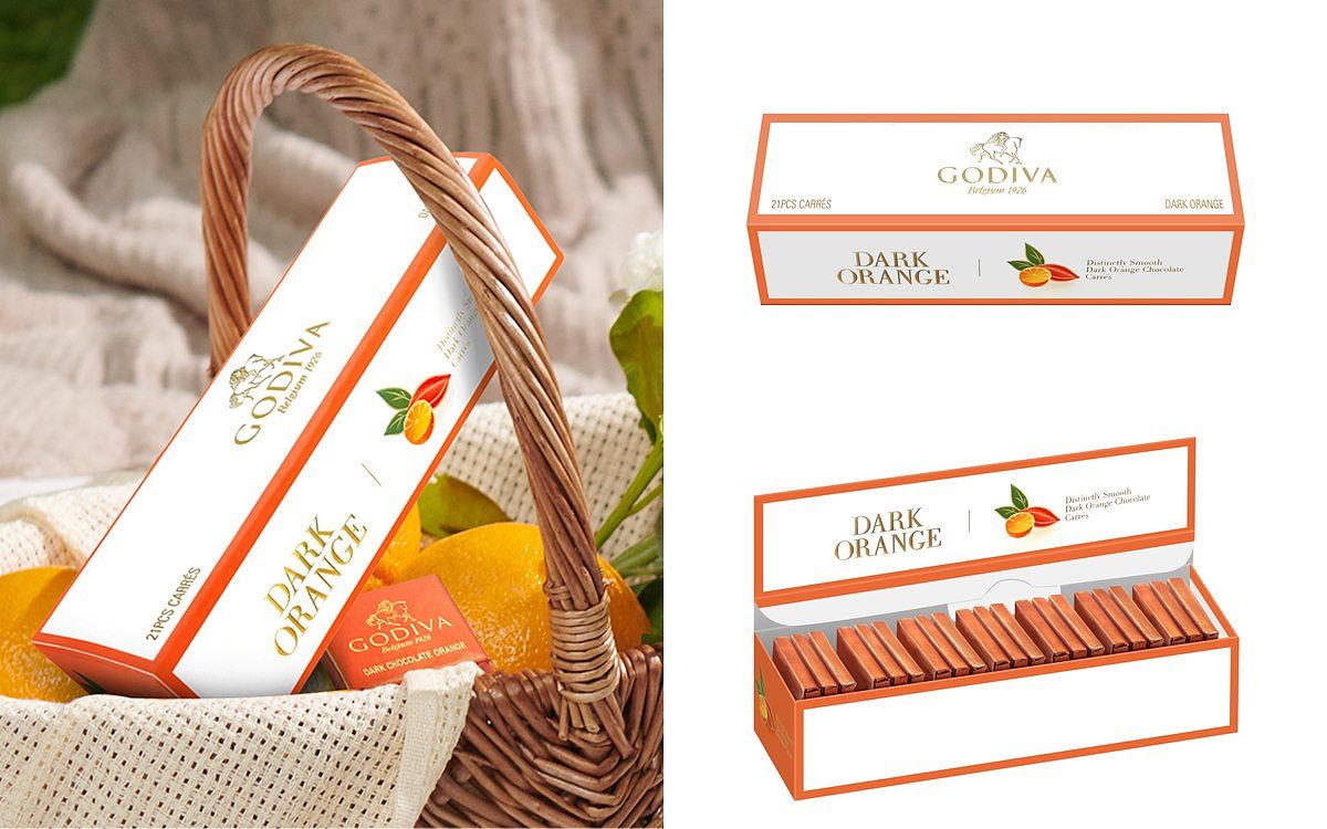 純粹黑巧克力帶來香醇誘人滋味,不僅擁有苦後回甘的醇香,與香氣逼人的甜橙搭配,更帶來層層遞進的味蕾享受!香橙黑巧克力入口的濃郁撲鼻橙香、化在嘴裡滑順綿延的酸甜馥郁口感,為品嚐純味巧克力更添一番享受,讓人意猶未盡!