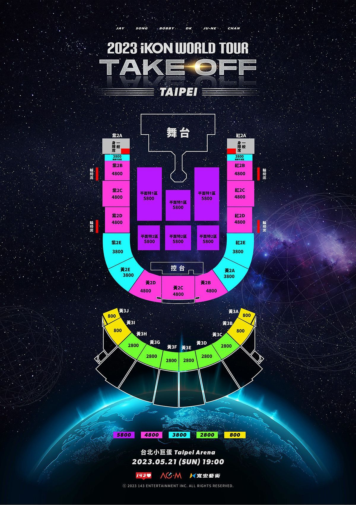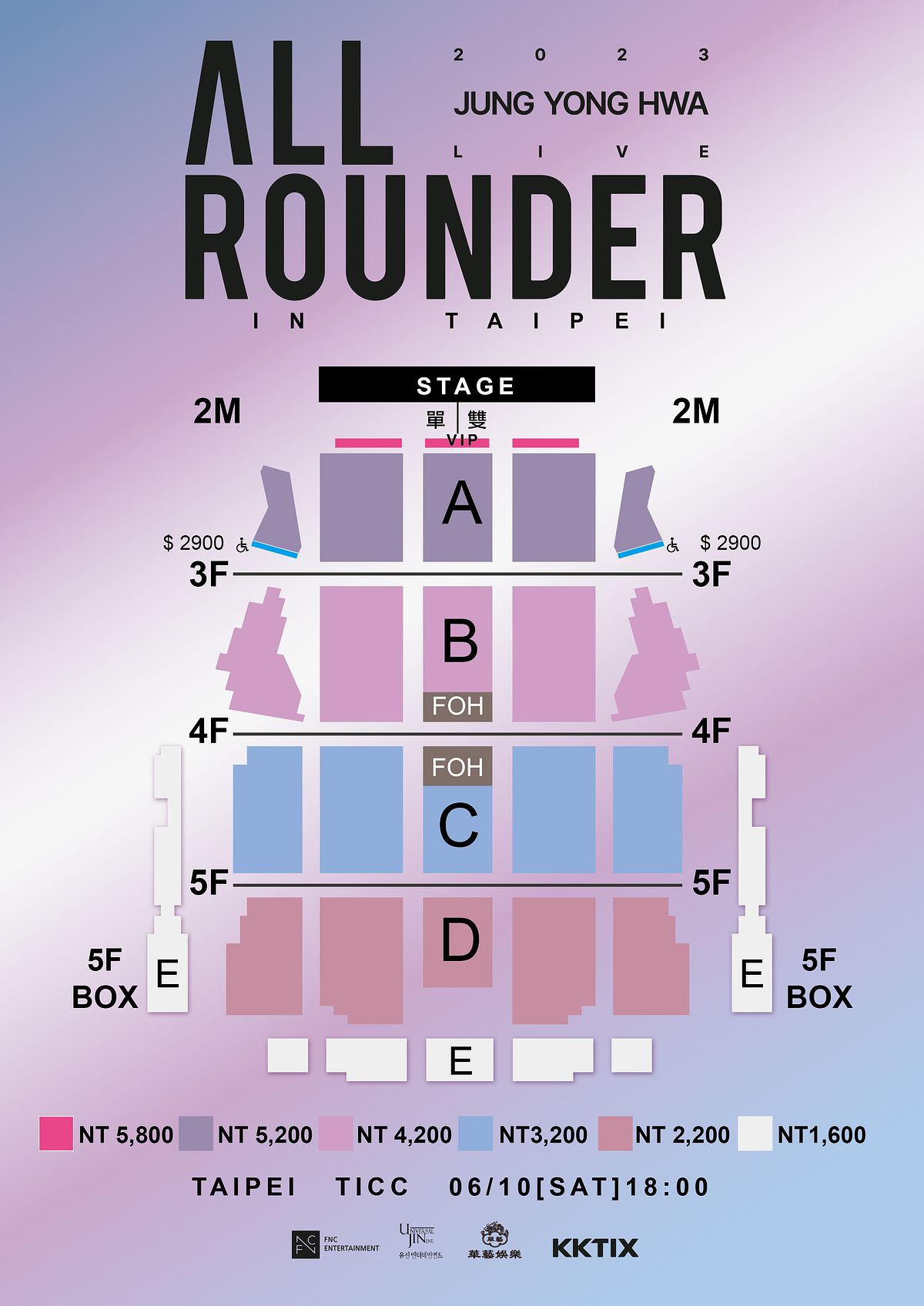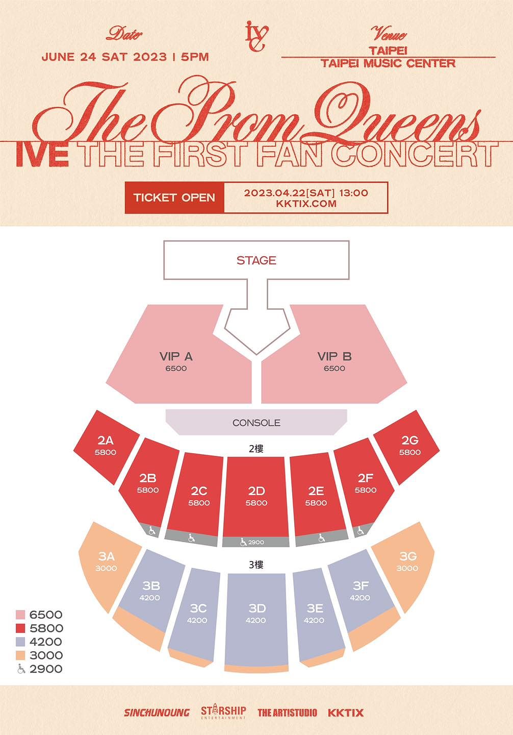 票價:NT$6,500 / NT$5,800 / NT$4,200 / NT$3,000 / NT$2,900